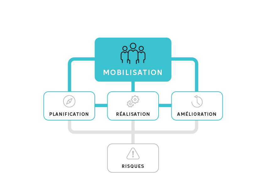 Le modèle de la prise en charge de la SST de l’ASSTSAS expose les grands principes de la prévention. Dans une organisation, la prise en charge de la SST commence par la mobilisation de tous. C’est le fil conducteur de toute démarche en prévention. Pour réduire ou éliminer les risques, des actions sont planifiées et réalisées dans une perspective d’amélioration continue.