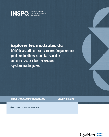 Paquet-Beaudet, F. et al. (avec Institut national de santé publique du Québec). (2025). Explorer les modalités du télétravail et ses conséquences potentielles sur la santé : Une revue des revues systématiques. Institut national de santé publique du Québec.